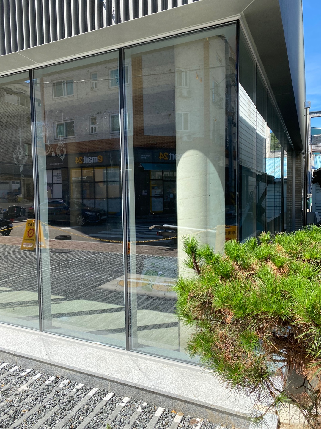 정면에서의 이미지를 외부 바닥의 패턴을 통해 확장하고 공간의 연속성을 가질 수 있게 한다.
